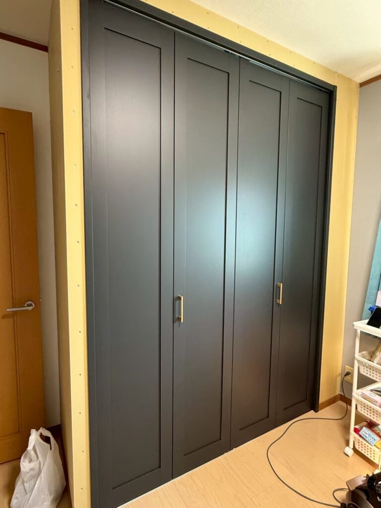 オフブラックの扉カラーにゴールドの取っ手がとてもオシャレです~(^^)